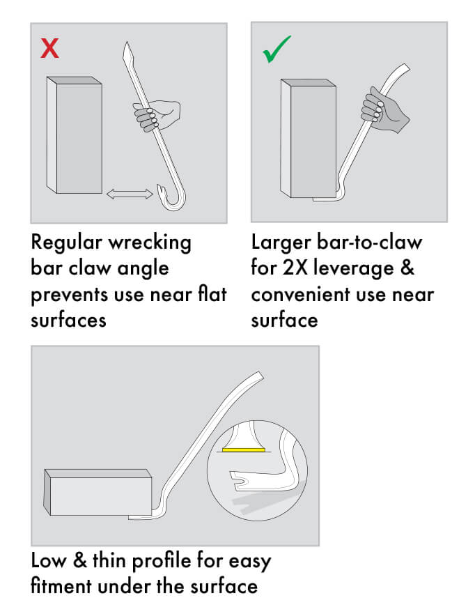 - Grand angle de barre à griffe pour un effet de levier 2x et une utilisation pratique près de la surface de travail