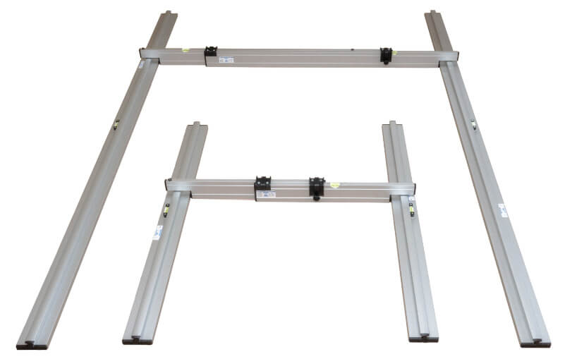 - Deux barres de nivellement réglables d’une largeur de 0,77 à 1,20 m et de 1,50 à 2,50 m