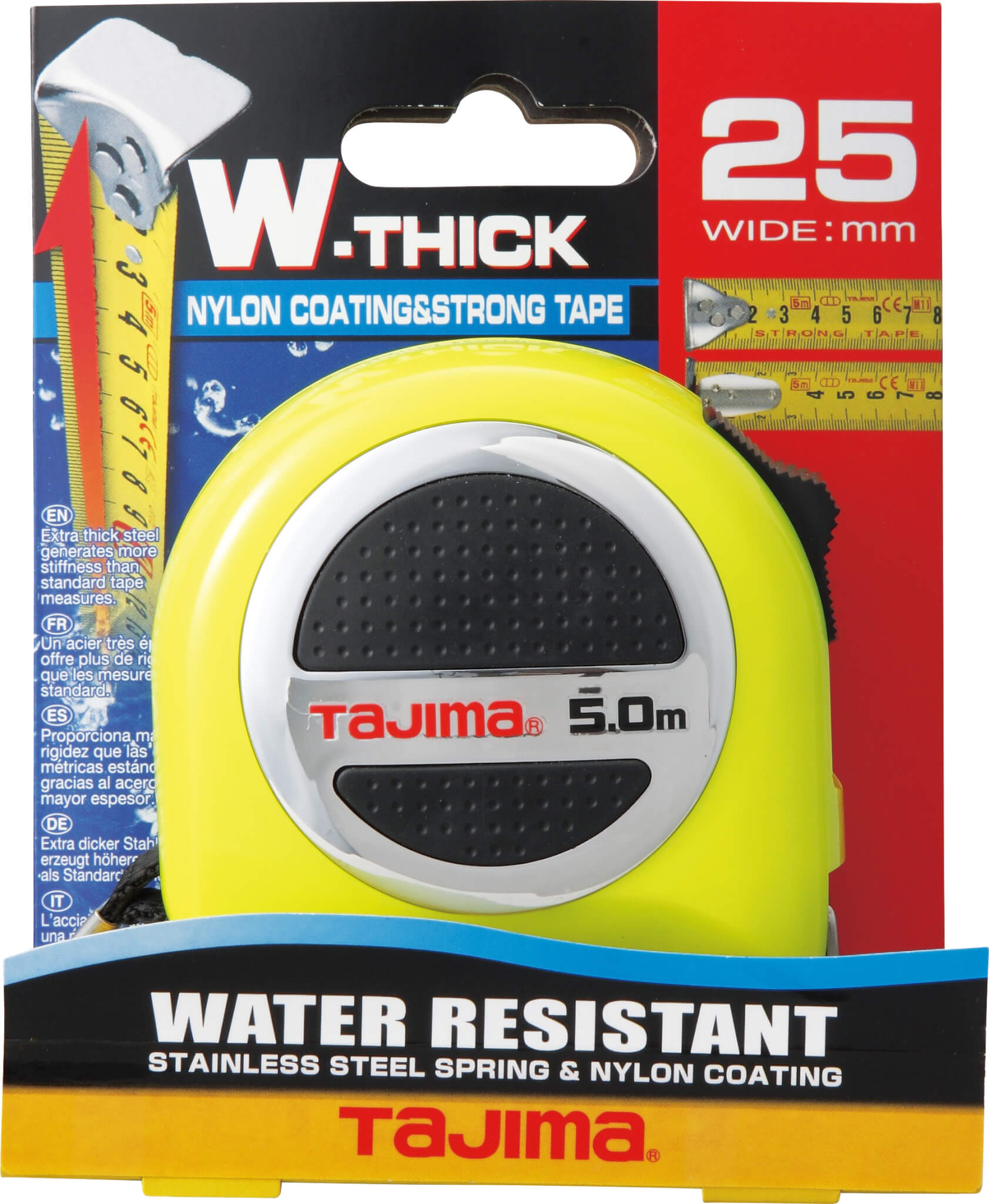 W-THICK Lock Premium Rolbandmaat voor een superieure stand-out, met duurzame gecoate schaal en veer gemaakt van roestvrij staal voor verbeterde opwindprestaties. Geschikt voor gebruik in natte weersomstandigheden.